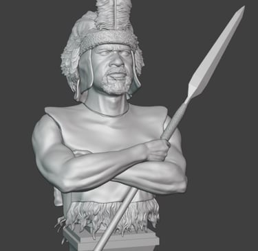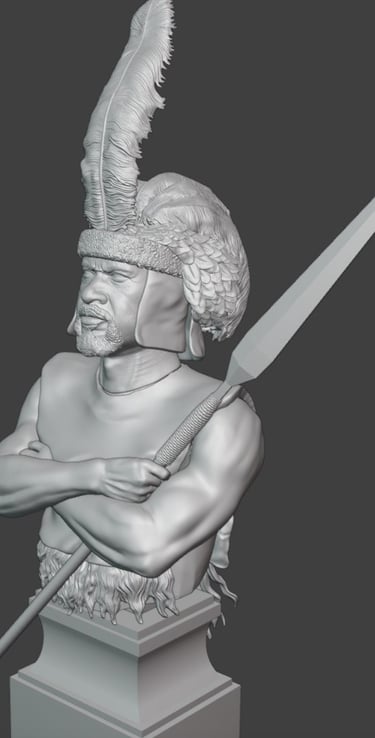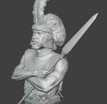 An additional feature introduced in this stage is the inclusion of two weapon options. The bust can now be displayed either with a throwing spear (assegai) or with a knobkerrie, a traditional club commonly used in close combat. This provides a bit of flexibility in presentation and allows for different character interpretations depending on the chosen option.