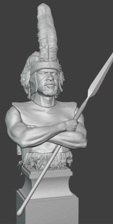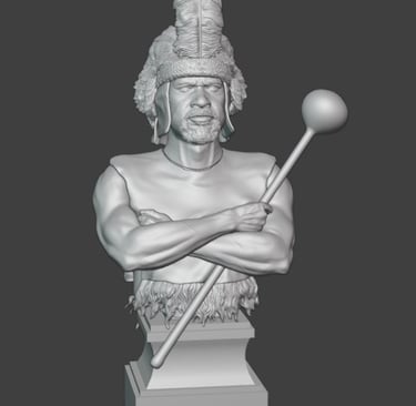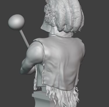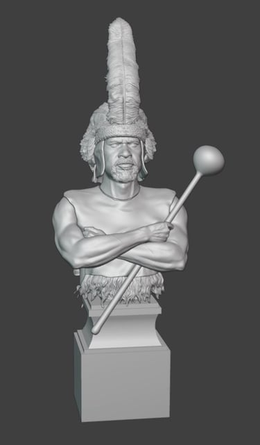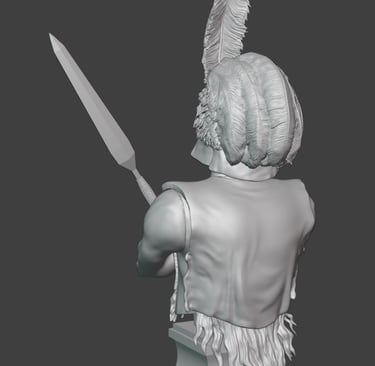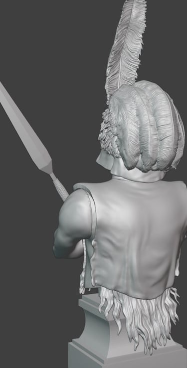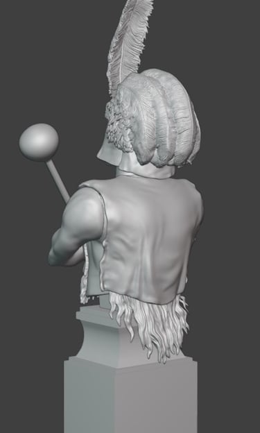 Particular attention has been given to the headdress, which has now been further developed with more detailed feather work. Individual feather groups have been refined to improve their layering and flow, helping to create a more natural and dynamic appearance. This part of the sculpt remains one of the most visually important features, and the added texture should read well once painted.